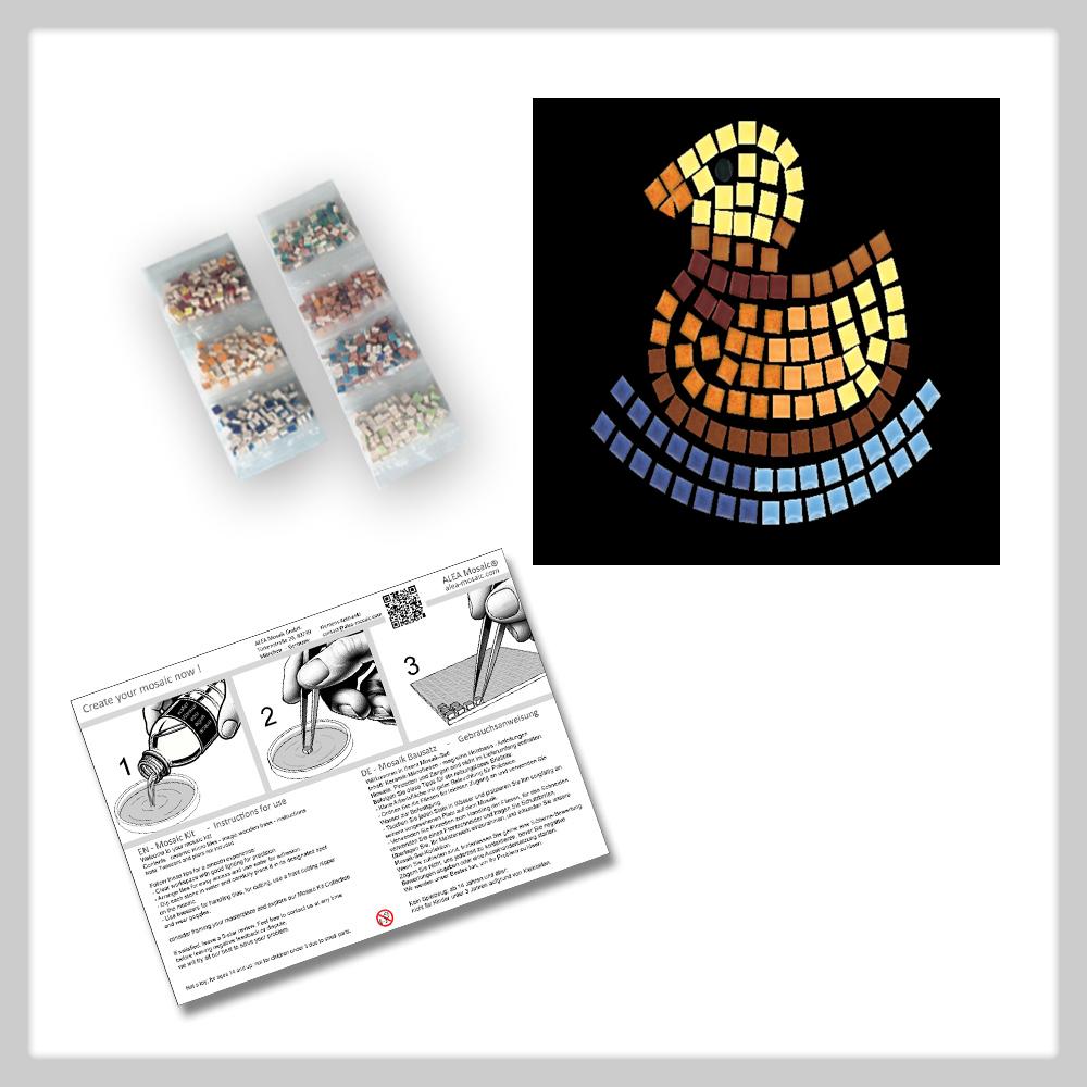 CONTENTS: Over 100 mini ceramic mosaic tiles - 20x15 cm wooden base with 1:1 printed pattern - step-by-step instructions