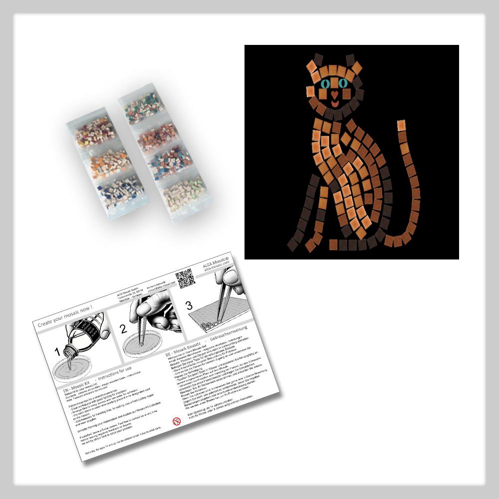CONTENTS: Over 100 mini ceramic mosaic tiles - 20x15 cm wooden base with 1:1 printed pattern - step-by-step instructions