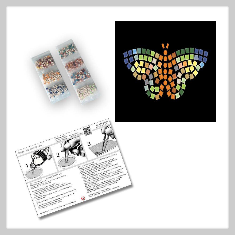 CONTENTS: Over 100 mini ceramic mosaic tiles - 20x15 cm wooden base with 1:1 printed pattern - step-by-step instructions
