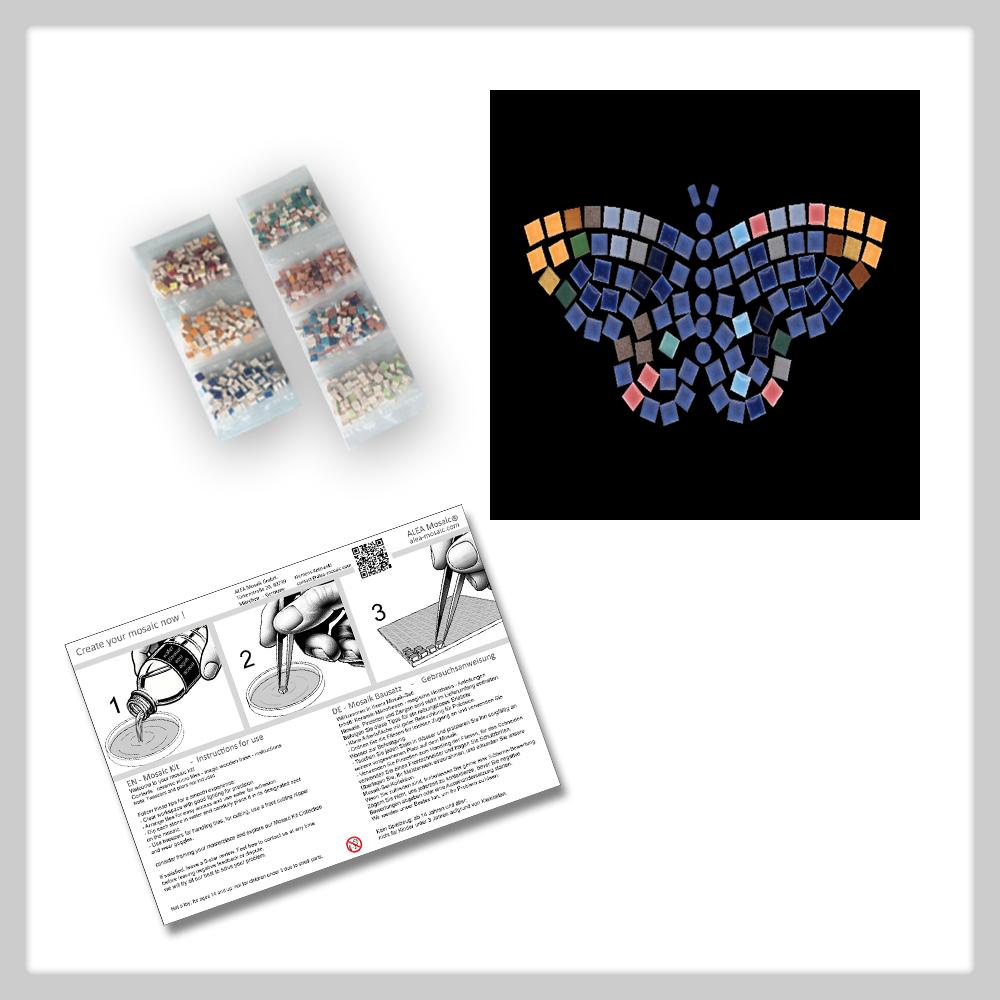 CONTENTS: Over 100 mini ceramic mosaic tiles - 20x15 cm wooden base with 1:1 printed pattern - step-by-step instructions