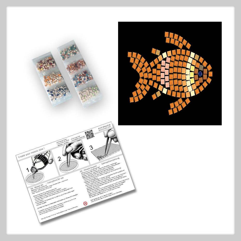 CONTENTS: Over 100 mini ceramic mosaic tiles - 20x15 cm wooden base with 1:1 printed pattern - step-by-step instructions
