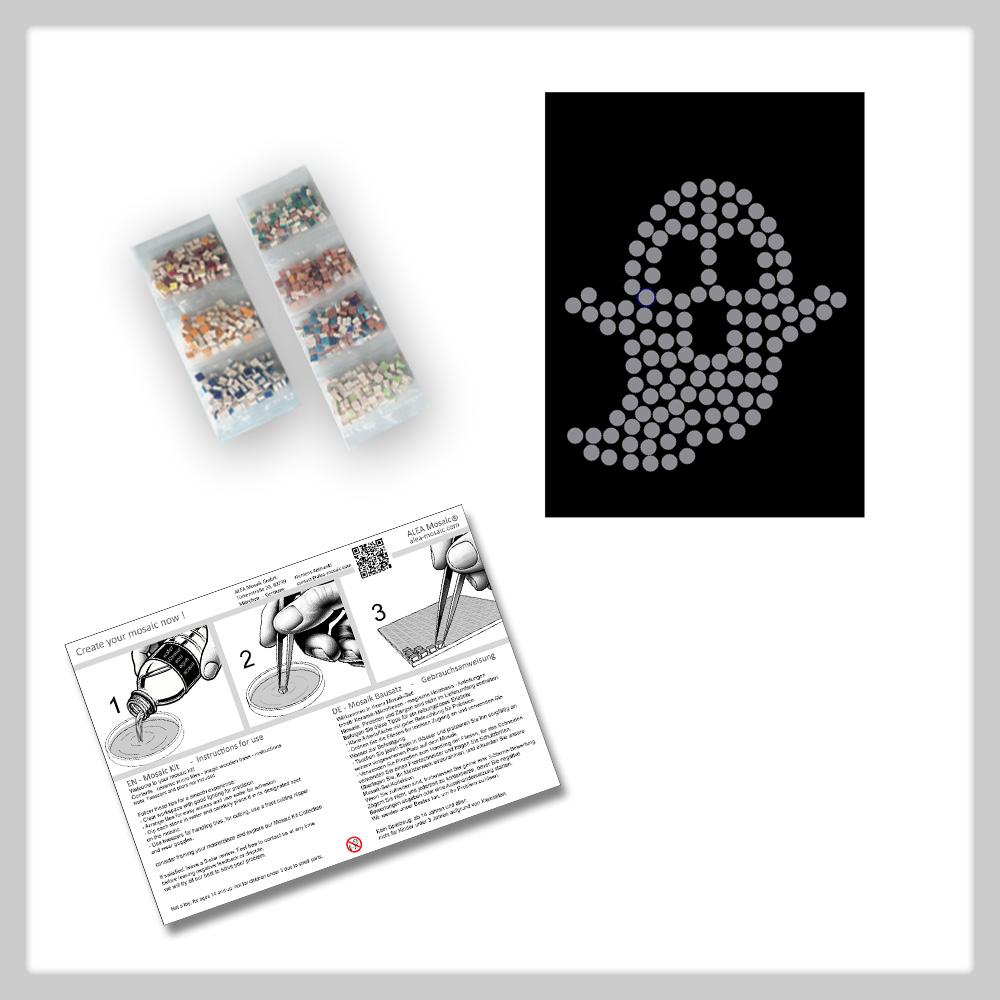 CONTENTS: Over 100 mini ceramic mosaic tiles - 20x15 cm wooden base with 1:1 printed pattern - step-by-step instructions