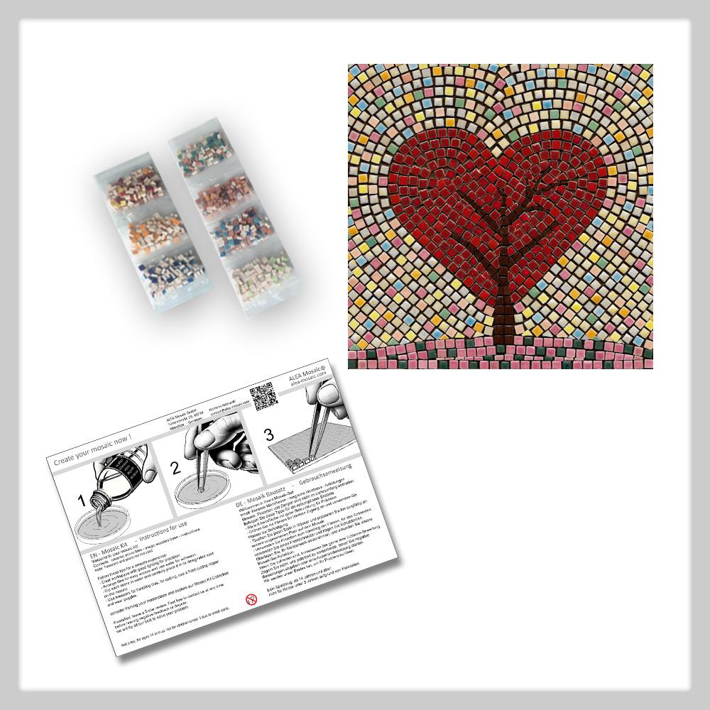 CONTENT: Over 1500 mini ceramic tiles - 20x20 cm wooden base with 1:1 printed pattern - step-by-step instructions