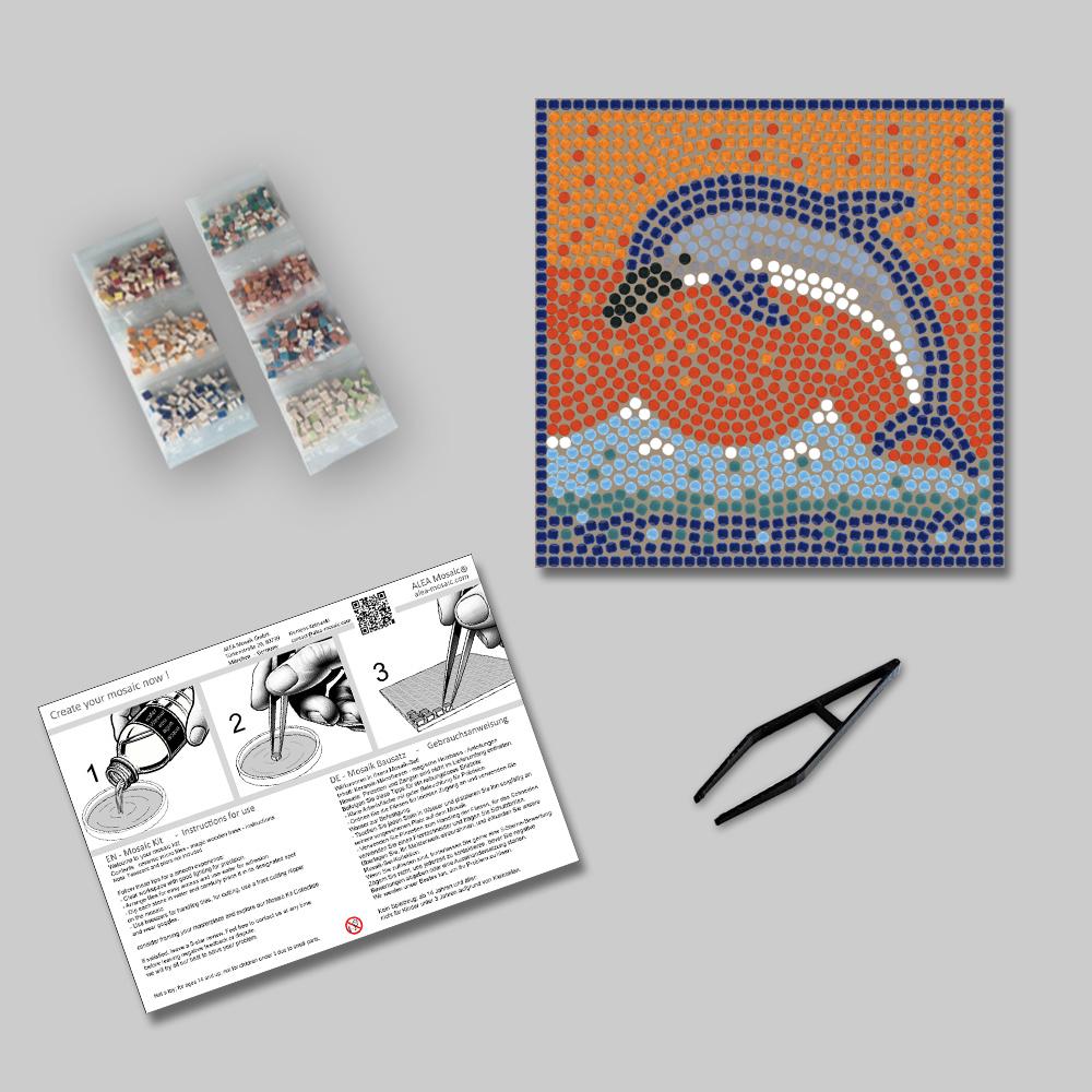 Kit de Mosaïque Artisanale 20x20 cm Complet dauphin joyeux
